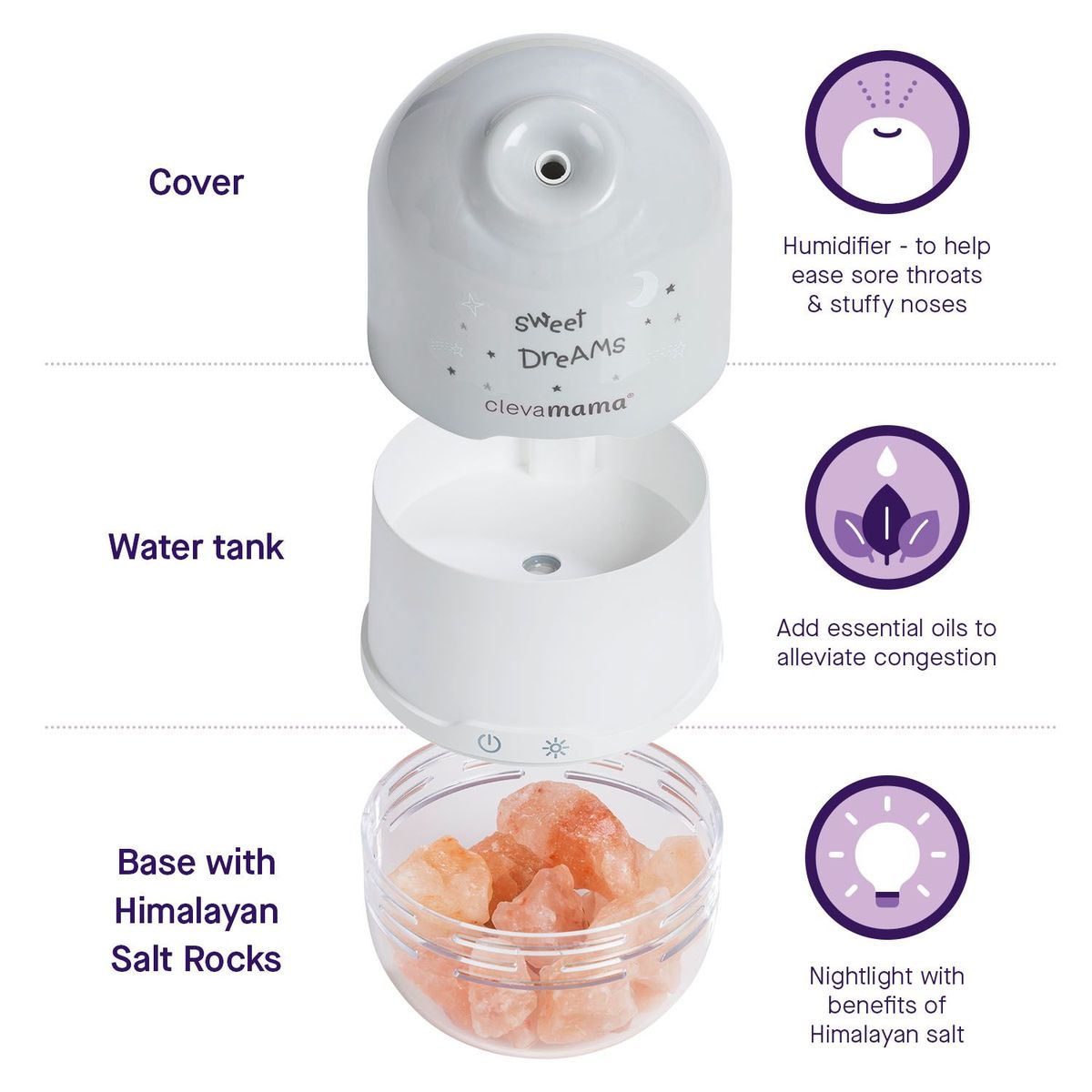 Himalayan salt crystals are renowned for their sleep-assisting properties, which helps to create a calm, restful sleep environment for your baby by acting as a natural air purifier. This reduces the chances of allergies and irritations that cause respiratory issues among babies. When a baby is congested, humidifying the air with a cool mist can help to ease upper respiratory symptoms, soothe sore throats and help dry itchy skin while your baby sleeps.