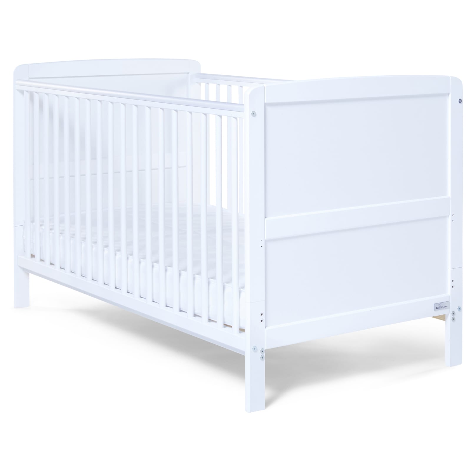 The Baby Elegance Travis Cotbed is made mainly from solid pine and finished in the lovely bright white finish allowing it to be dressed up in any colour. The 3 position base converts easily into a junior bed.