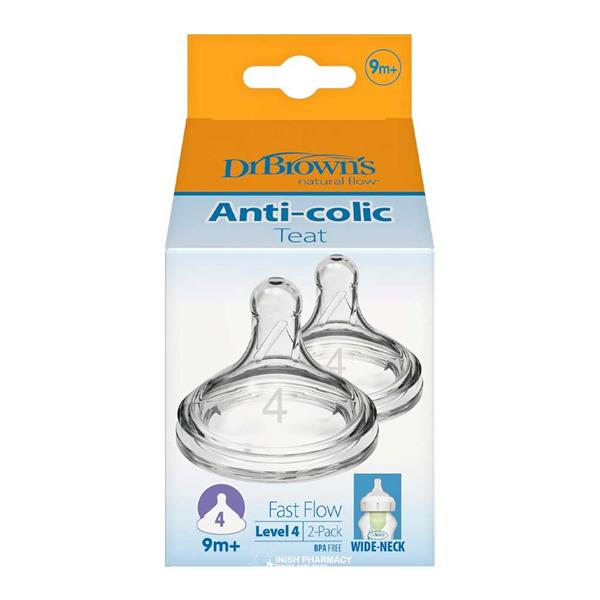 Dr Brown’s Options+ Anti-Colic Level 4 teats are a fast flow teat usually used by babies who prefer a quicker flow and feeding is well established. The typical age of use would be 9+ months and upwards but please be aware baby's preferred flow rate may vary.